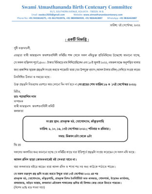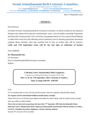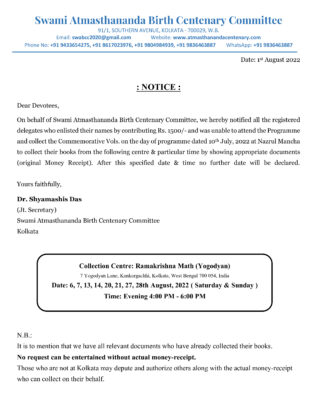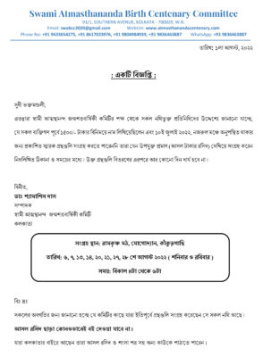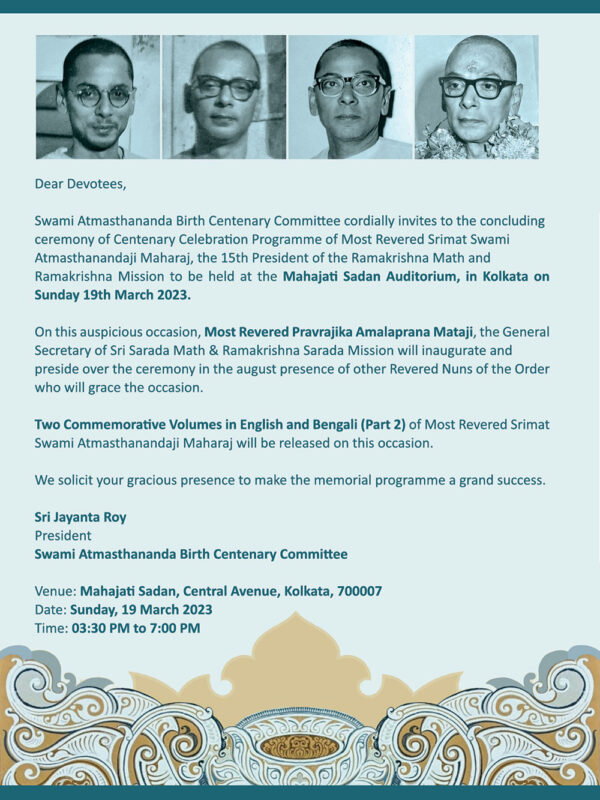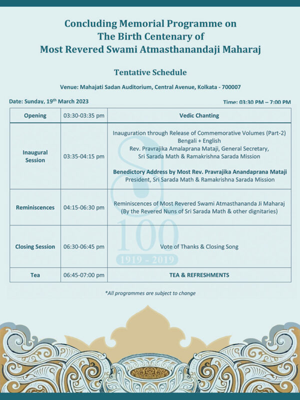 Two Commemorative Volumes— one compiling the writings, lectures, interviews & letters of Revered Maharaj in Bengali, Hindi, Gujarati and English and the other comprising the reminiscences of Revered Maharaj by sannyasis of the Ramakrishna Math, sannyasinis of Sri Sarada Math, devotees and eminent personalities— will be released on that day.